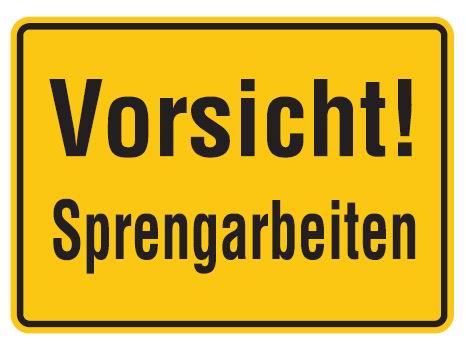 Aluminium Schild Vorsicht! Sprengarbeiten 250x350 mm geprägt