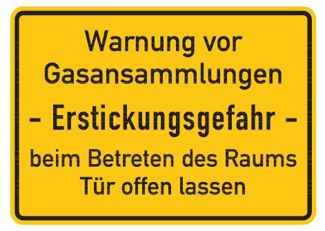 Aluminium Schild Warnung vor Gasansammlungen - Erstickungsgefahr - beim Betreten des Raums Tür offen