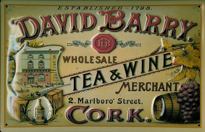 Blechschild David Barry Tea and Wine Cork Tee Reklame Schild Nostalgieschild