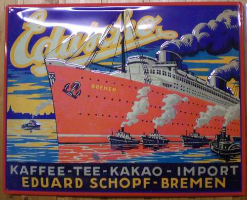 Blechschild Eduscho Kaffee Tee Kakao Schiff Reklame Schild Nostalgieschild