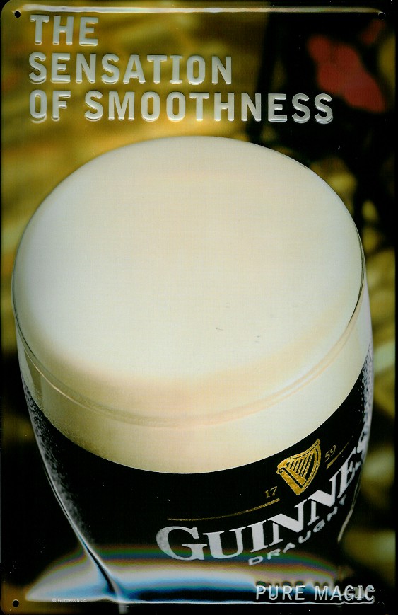 Blechschild Guinness Bier The sensation of smoothness Bierglas Schild Werbeschild