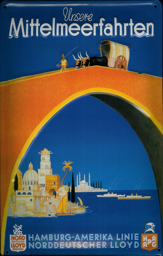 Blechschild Hapag Norddeutscher Lloyd Mittelmeerfahrten Brücke Dampfer Schiff Schild Nostalgieschild