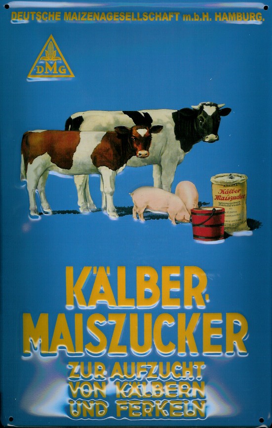 Blechschild Kälber Maiszucker Tiefutter Kuh Schwein Kalb Schild Nostalgieschild