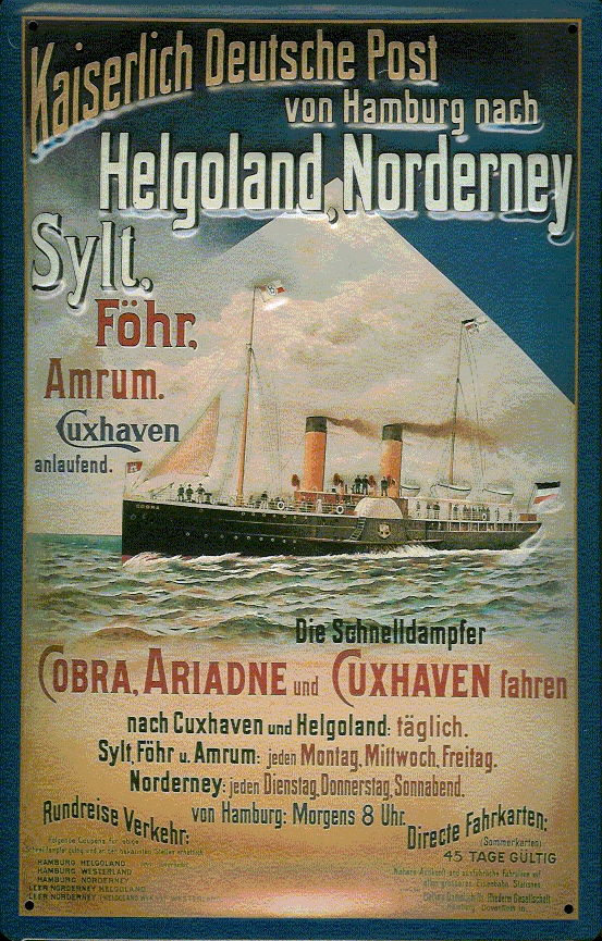 Blechschild Kaiserlich Deutsche Post Cuxhaven Helgoland Dampfer Schiff Schild Nostalgieschild