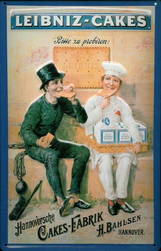 Blechschild Leibniz Cakes Kekse Schornsteinfeger Bäcker Schild Nostalgieschild