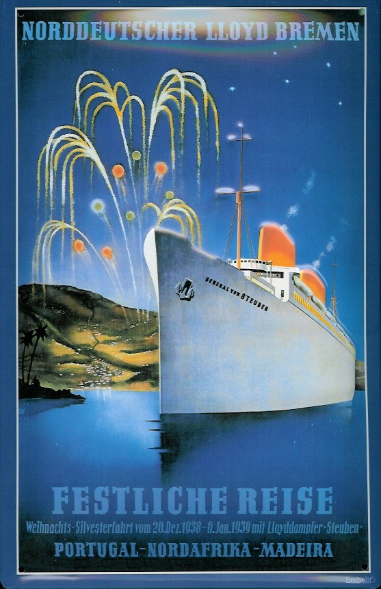 Blechschild Norddeutscher Lloyd Bremen Kreuzfahrt Feuerwerk Dampfer Schiff Schild Nostalgieschild