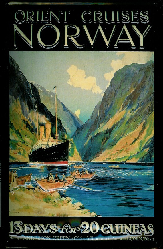 Blechschild Orient Cruises Norway Fjord Norwegen Kreuzfahrt Dampfer Reedereiplakat Schiff Schild Nos