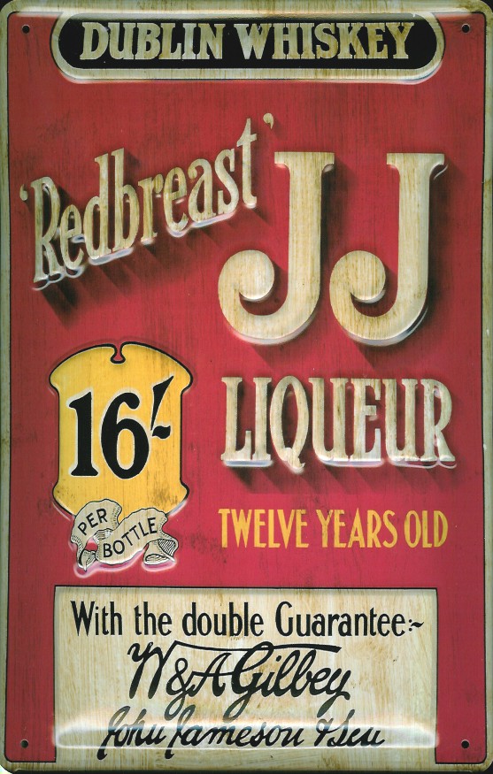 Blechschild Redbreast JJ Whiskey Dublin 16 Liqueur Schild retro Werbung