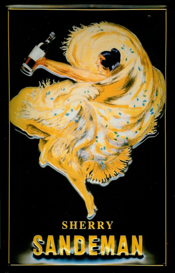 Produktinformationen "Blechschild Sandeman Sherry Tänzerin gelbes Kleid Schild Werbeschild"