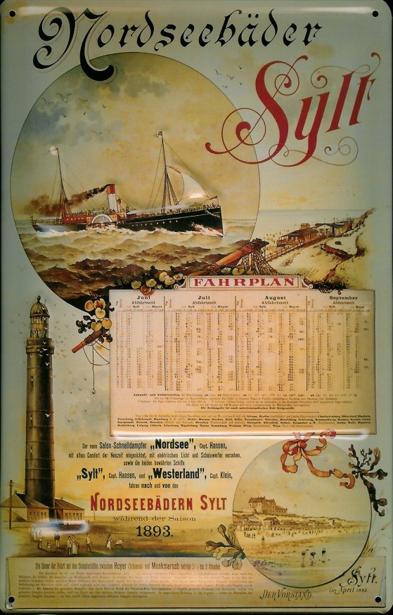 Blechschild Sylt Fahrplan Westerland Leuchtturm Kampen Dampfer Reedereiplakat Schiff Schild Nostalgi