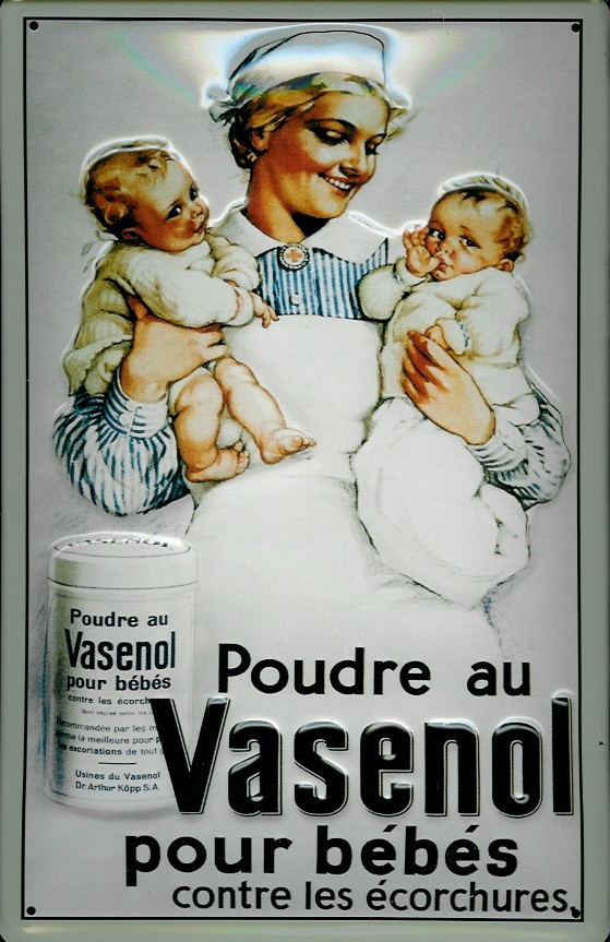 Blechschild Vasenol Kinder Puder Poudre au vasenol pour bébés Schild retro Werbeschild Nostalgieschi