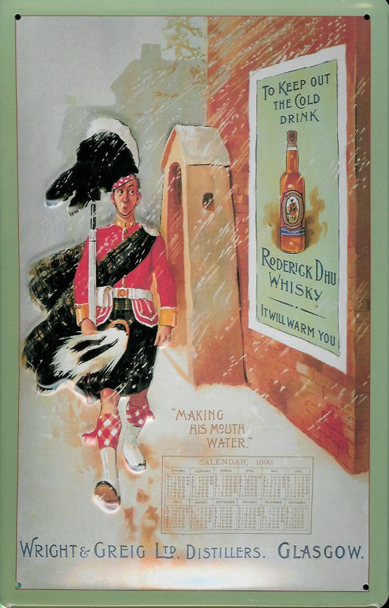 Blechschild Wright & Greig Whisky Dudelsack Kilt Schottland Schild Nostalgieschild