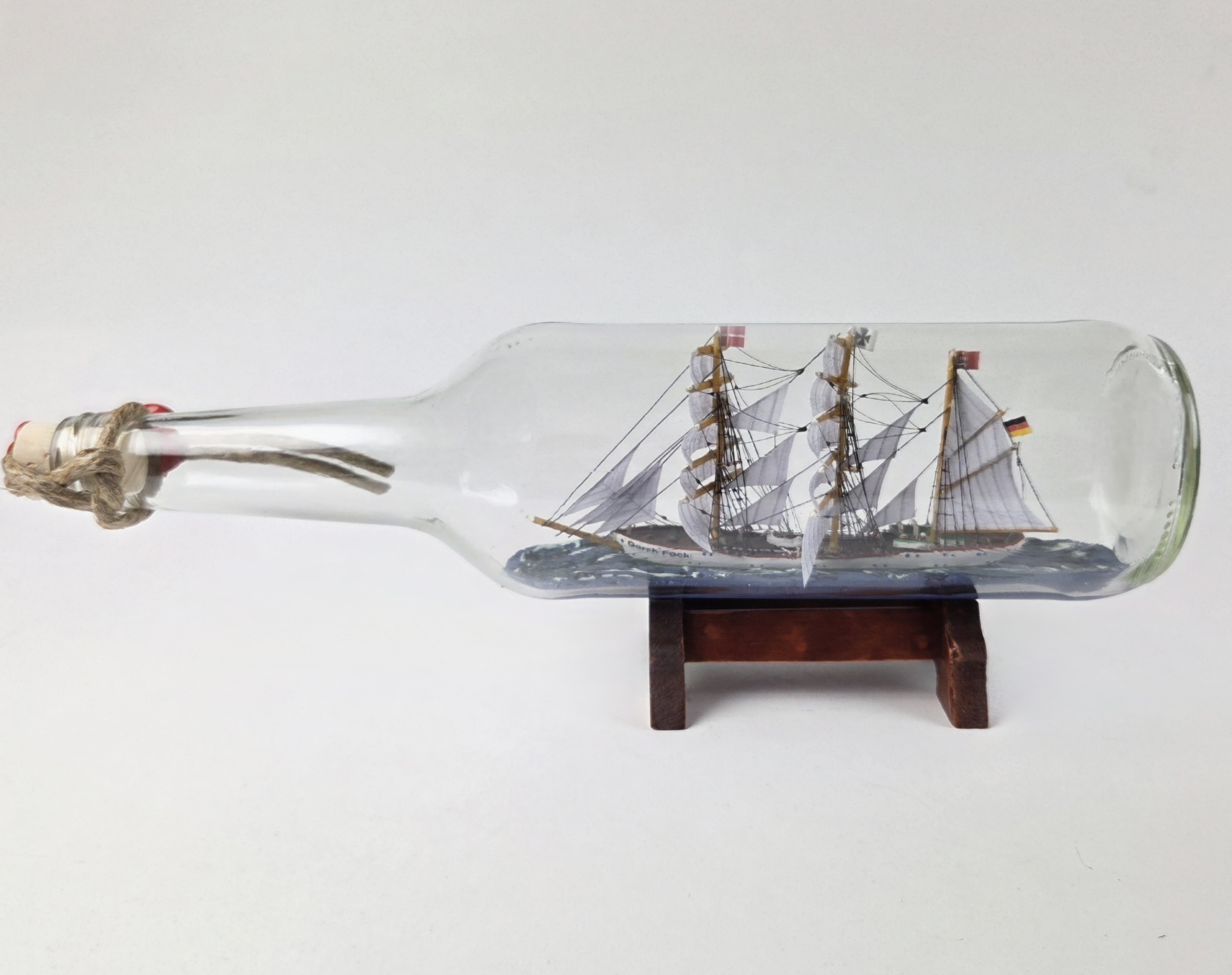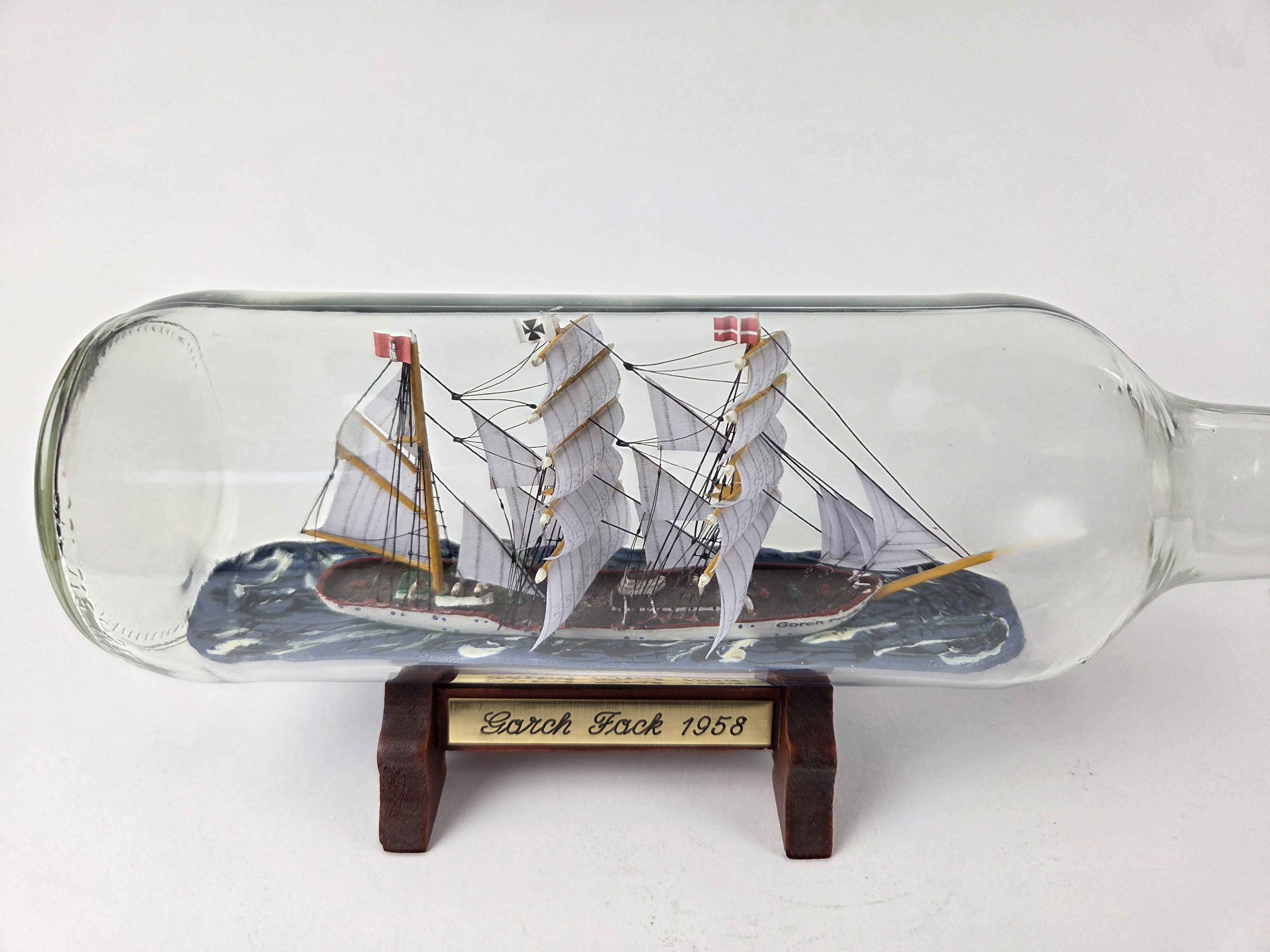 Gorch Fock 700 ml runde Flasche Buddelschiff Museumsqualität