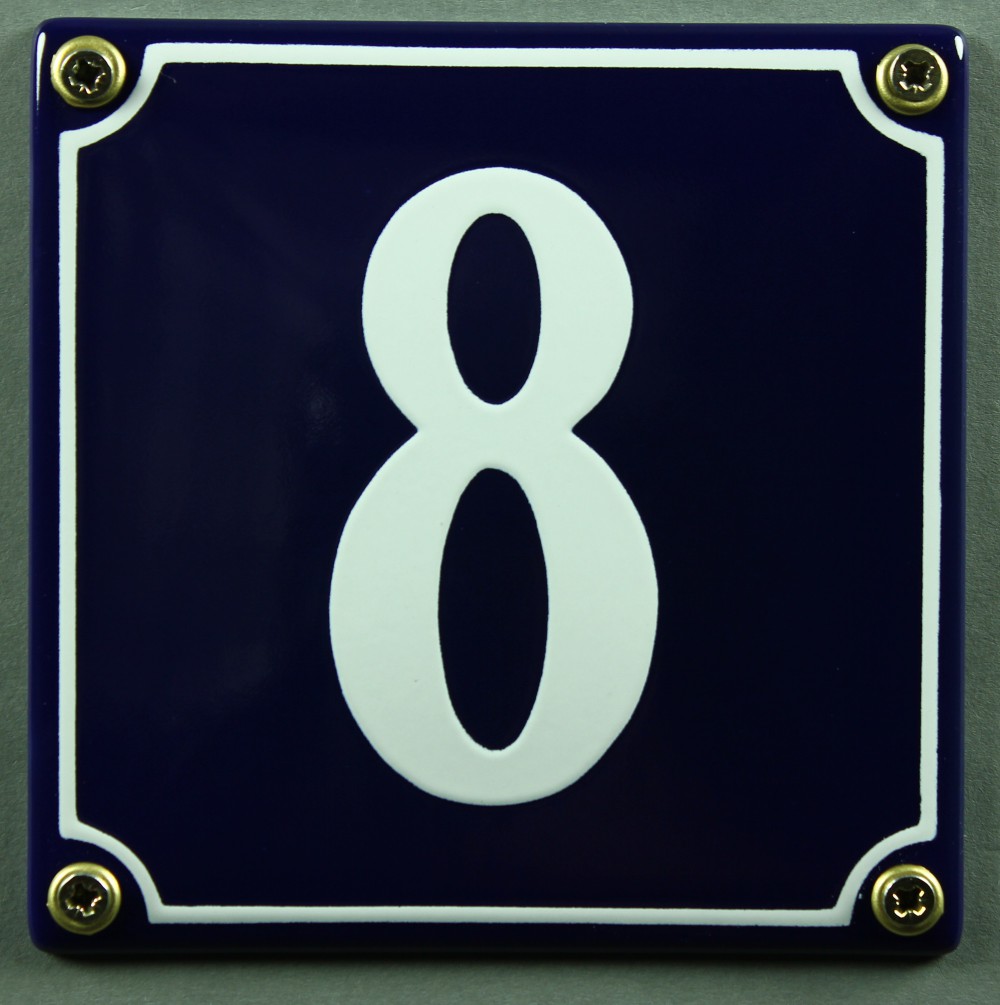 Hausnummernschild 8 blau - weiß 12x12 cm sofort lieferbar Schild Emaille Hausnummer Haus Nummer Zahl