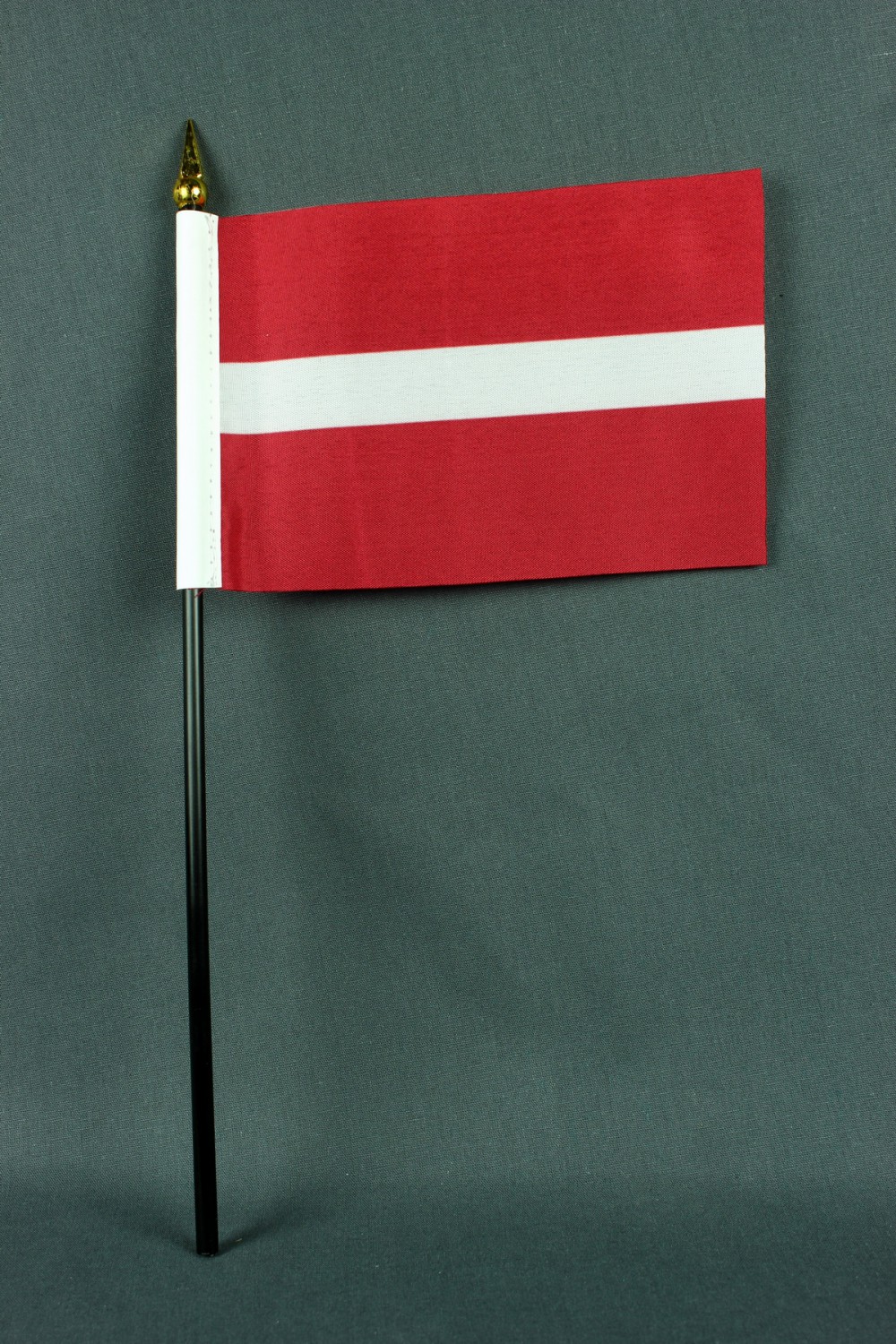 Produktinformationen "Kleine Tischflagge Lettland 10x15 cm optional mit Tischfähnchenständer"