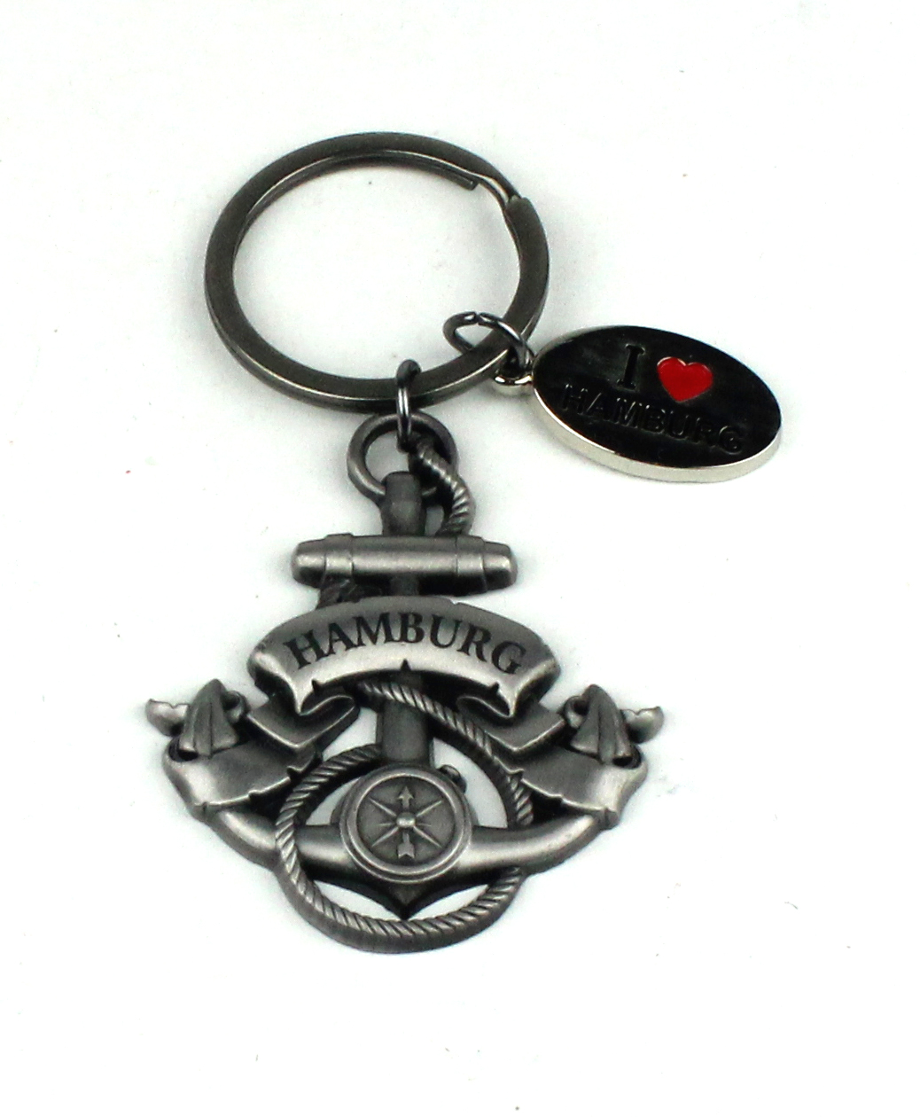 Schlüsselanhänger Anker mit Tau Hamburg Banderole Kompass silber titan Mitbringsel Deko Souvenir