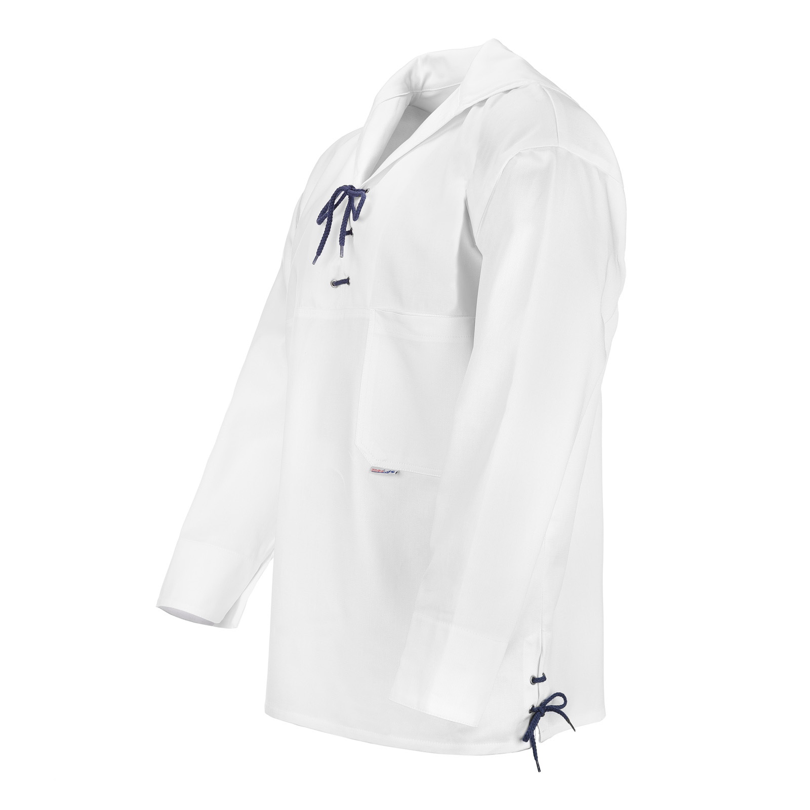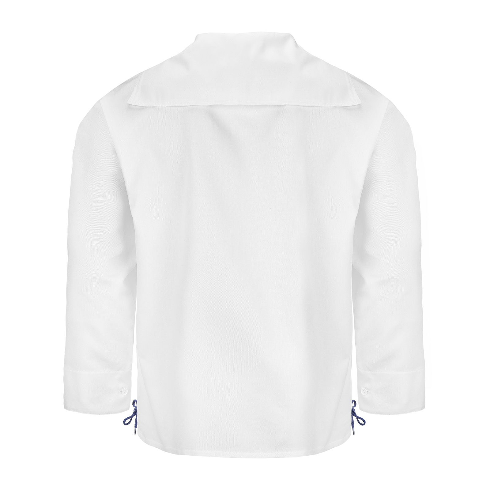 Original Schlupf - Blousons im Marine - Look mit großem Matrosenkragen, Kordelschnürung am Brusteinsatz und an den Seitenschlitzen. Dazu eine aufgesetzte Brusttasche. Ärmelbündchen mit Knopf. Hautsympatische 100% Baumwolle.