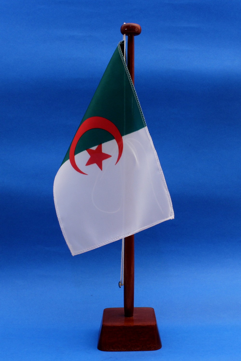 Tischflagge Algerien 25x15 cm optional mit Holz- oder Chromständer Tischfahne Tischfähnchen