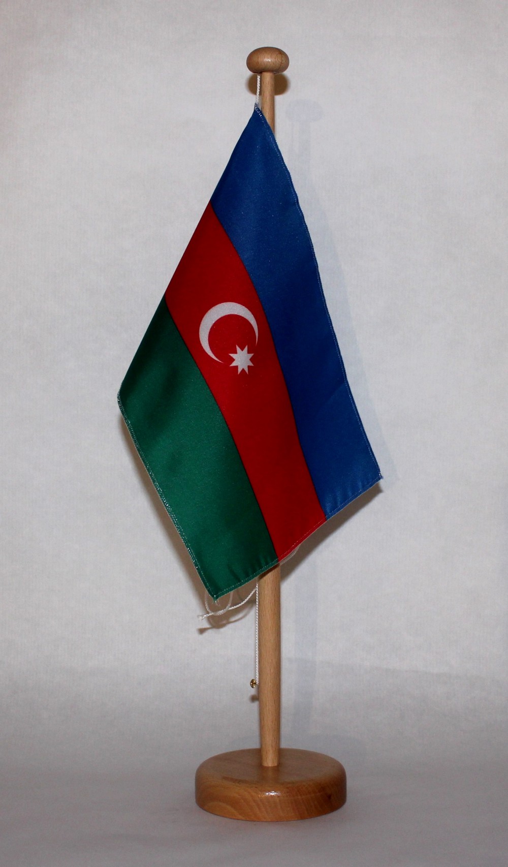Tischflagge Aserbaidschan 25x15 cm optional mit Holz- oder Chromständer Tischfahne Tischfähnchen