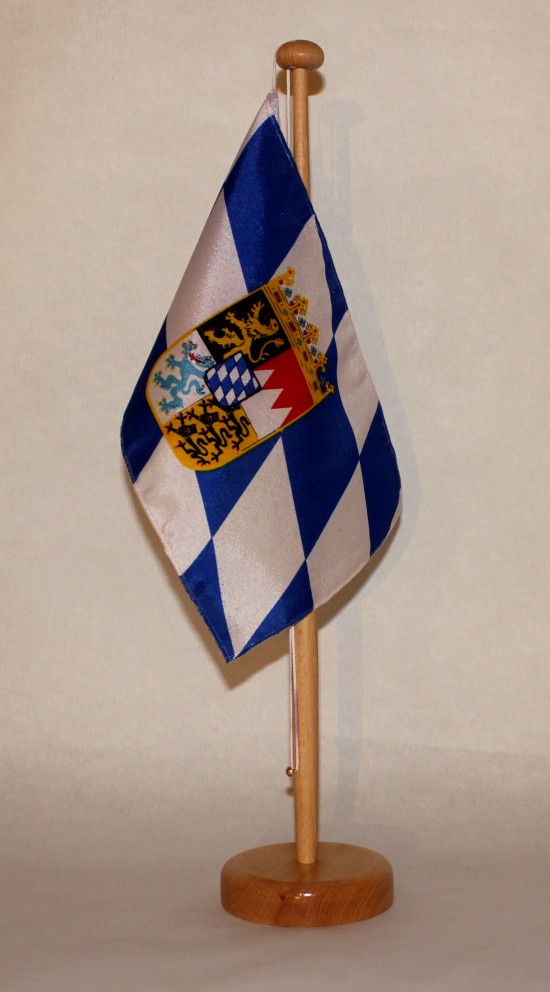 Tischflagge Bayern Raute mit Wappen 25x15 cm optional mit Holz- oder Chromständer Tischfahne Tischfä