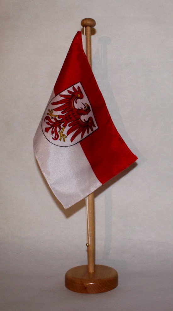 Produktinformationen "Tischflagge Brandenburg 25x15 cm optional mit Holz- oder Chromständer Tischfahne Tischfähnchen"