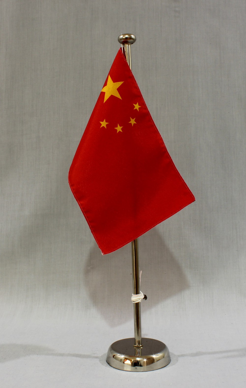 Produktinformationen "Tischflagge China 25x15 cm optional mit Holz- oder Chromständer Tischfahne Tischfähnchen"