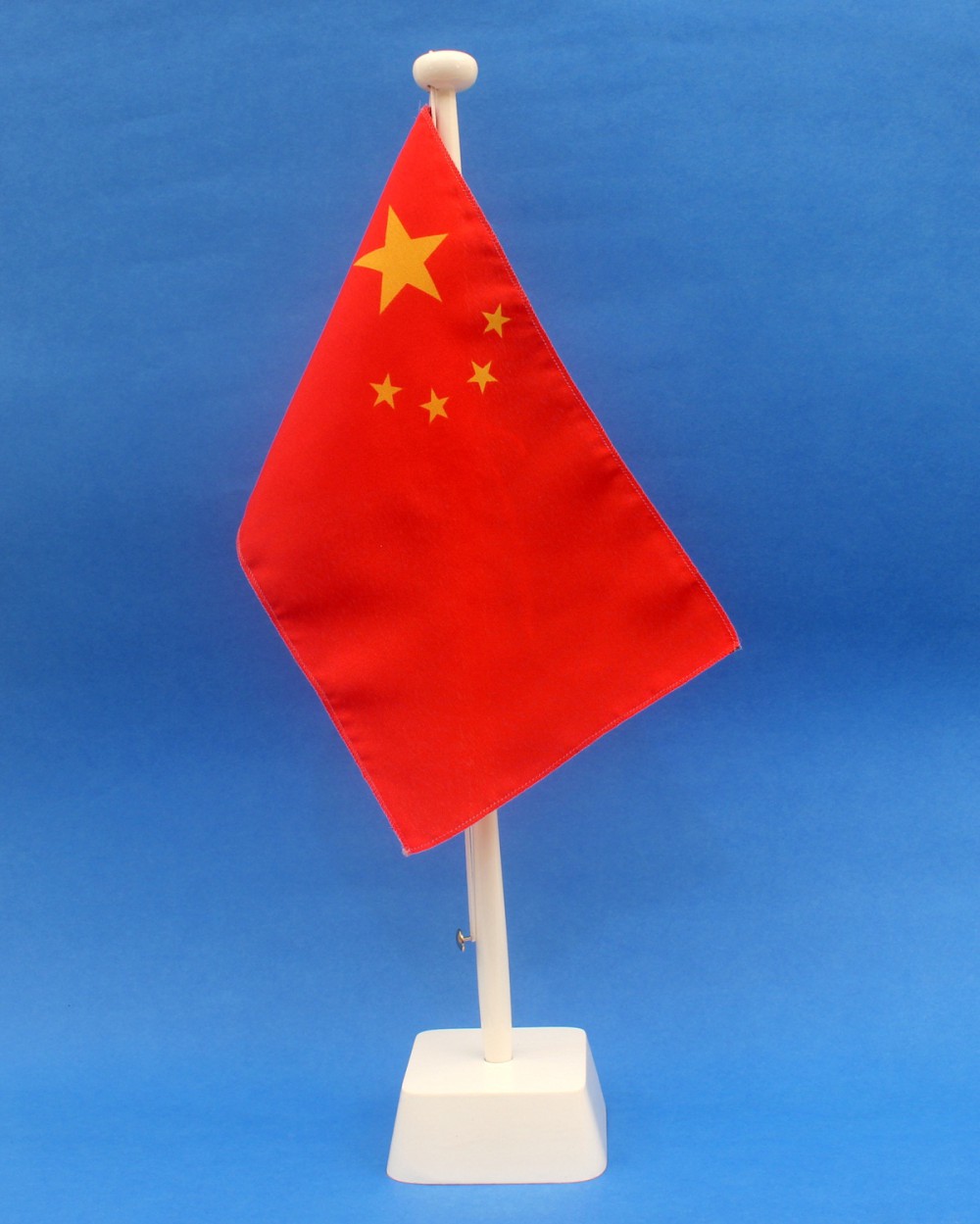 Produktinformationen "Tischflagge China 25x15 cm optional mit Holz- oder Chromständer Tischfahne Tischfähnchen"