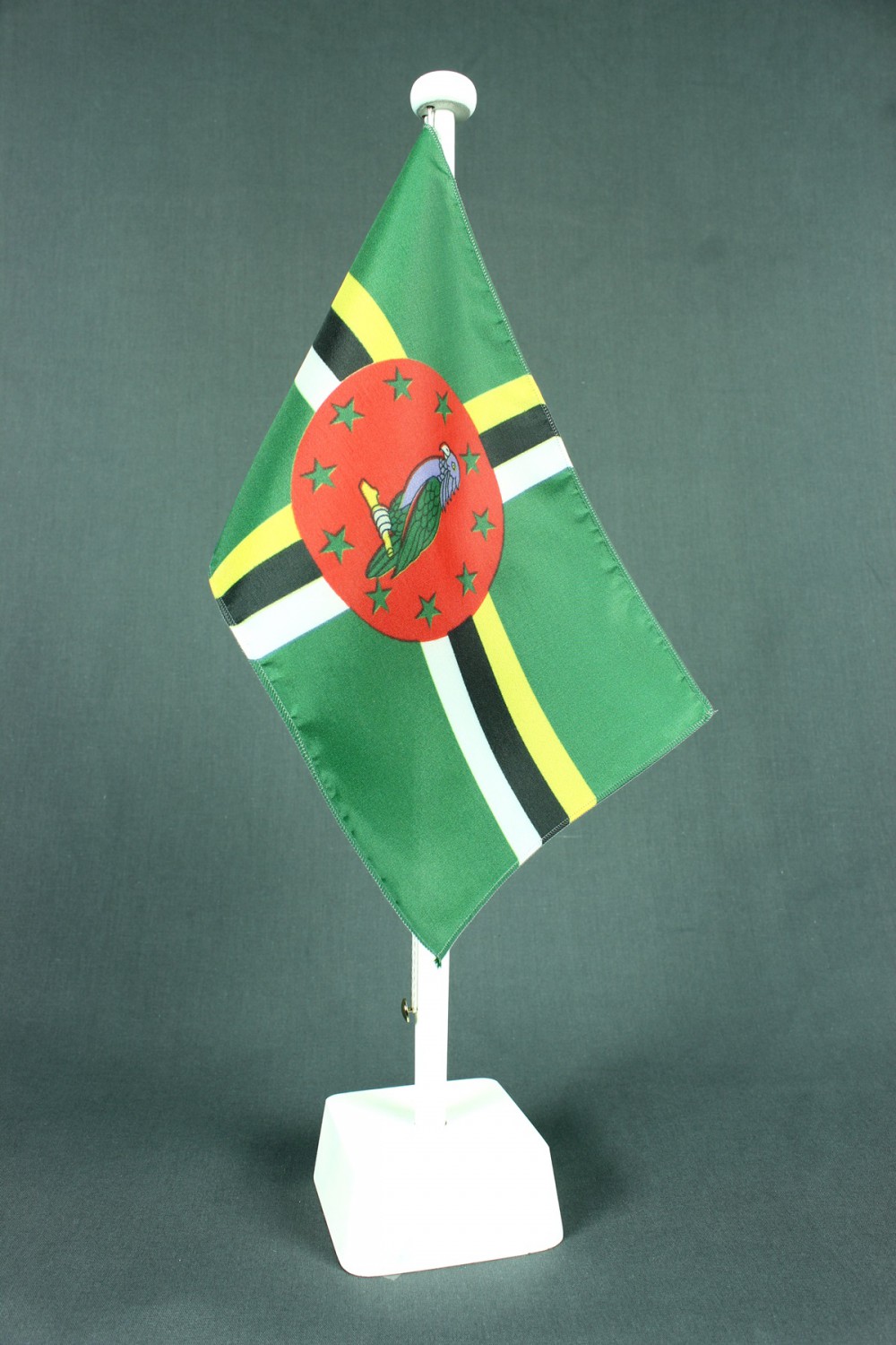 Tischflagge Dominica 25x15 cm optional mit Holz- oder Chromständer Tischfahne Tischfähnchen