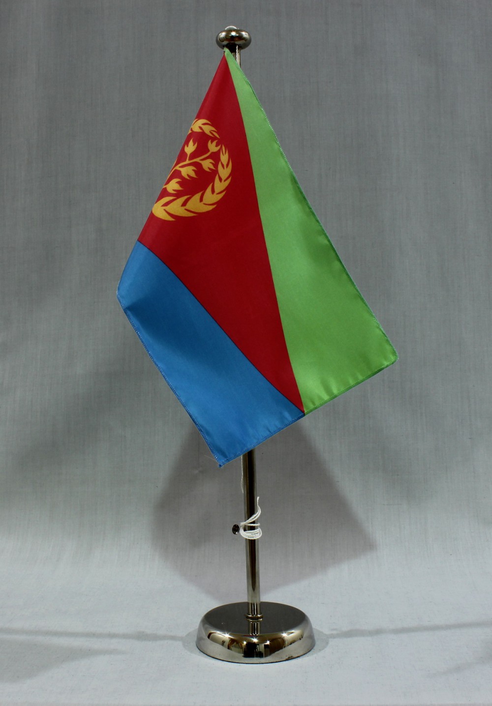 Tischflagge Eritrea 25x15 cm optional mit Holz- oder Chromständer Tischfahne Tischfähnchen