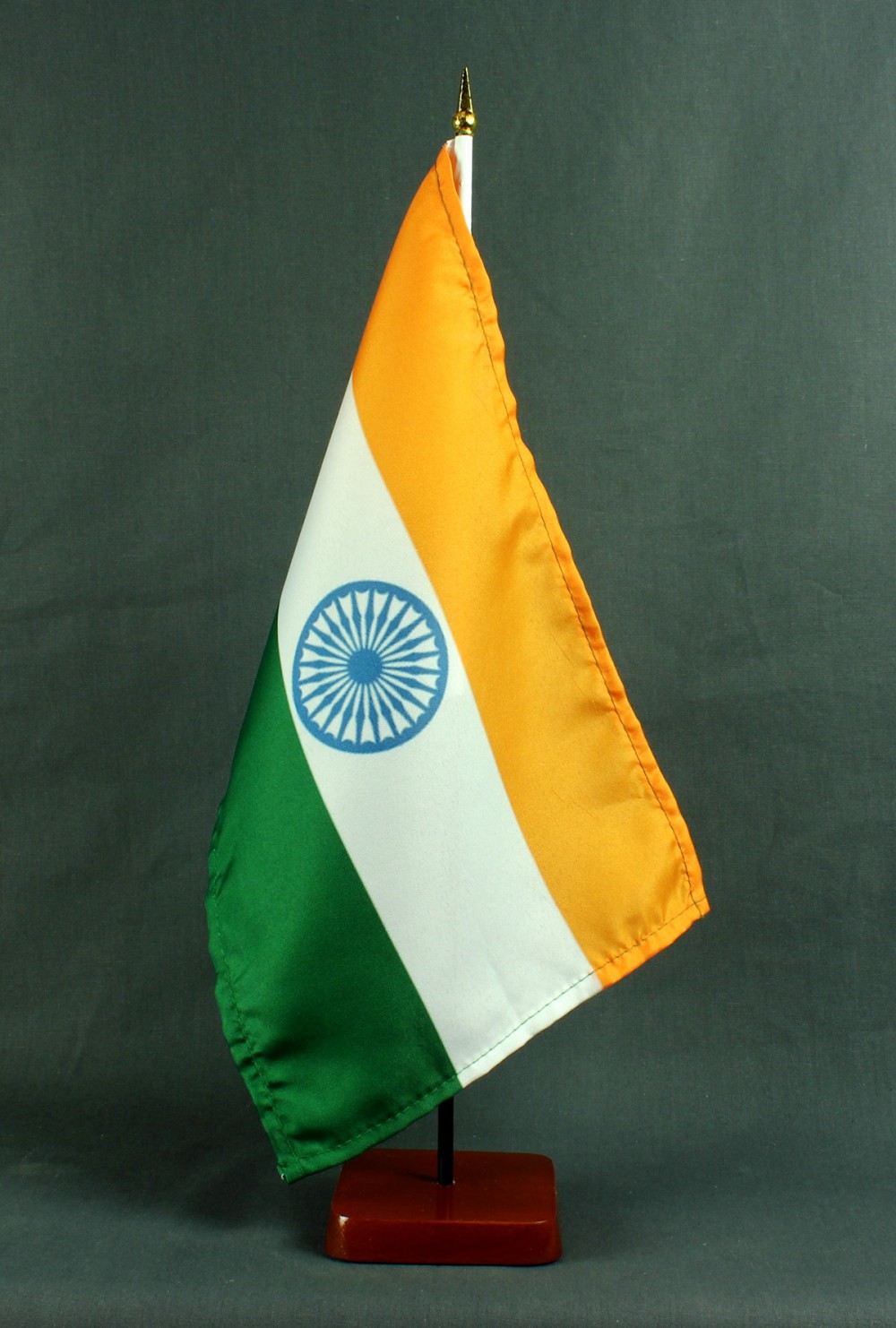 Produktinformationen "Tischflagge Indien 20x30 cm optional mit Tischflaggenständer aus Mahagoni Holz"