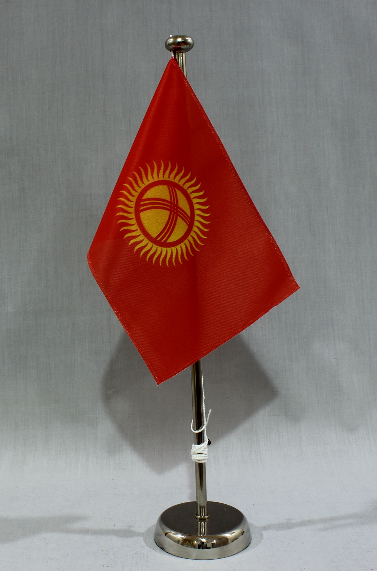 Tischflagge Kirgistan 25x15 cm optional mit Holz- oder Chromständer Tischfahne Tischfähnchen