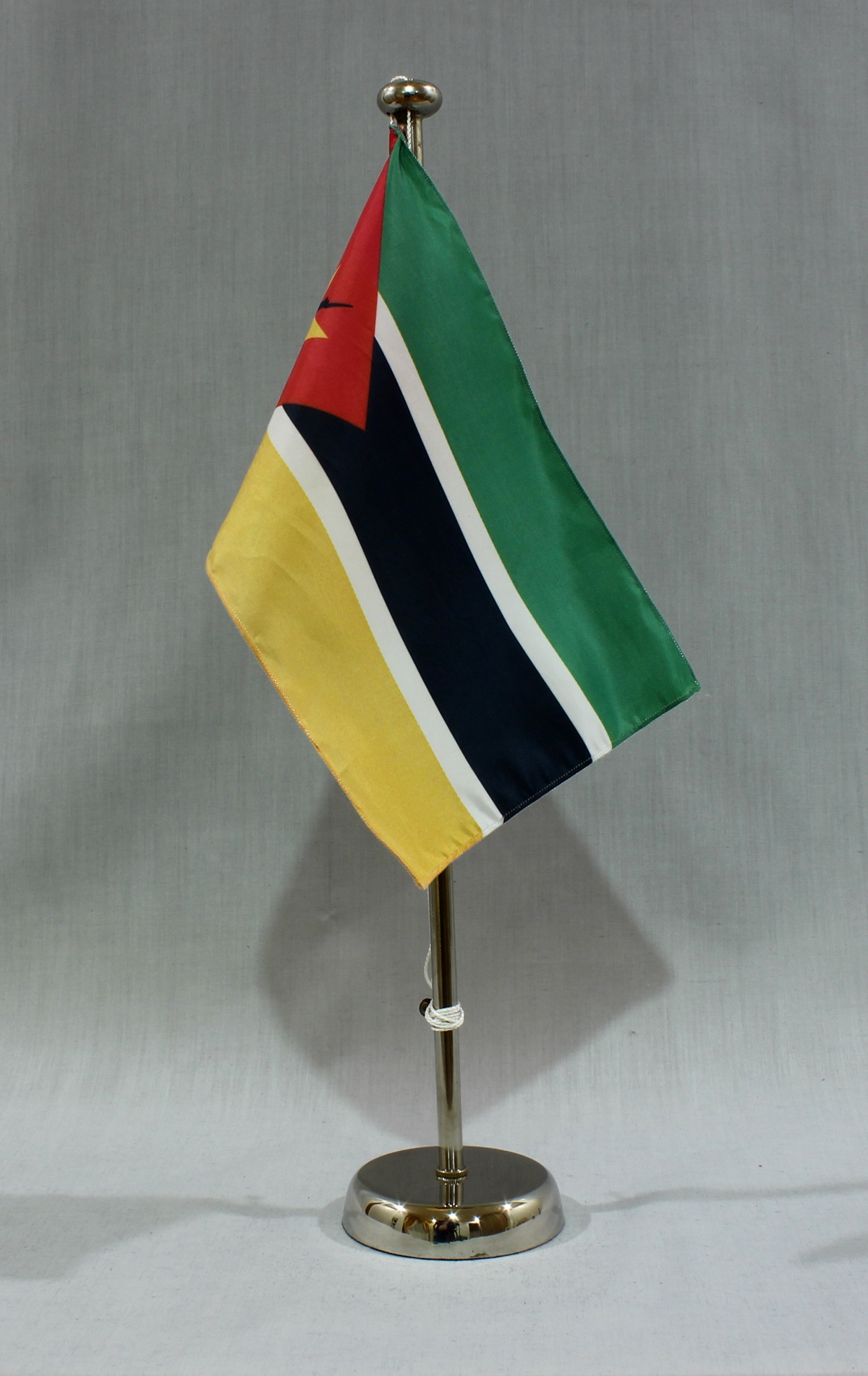 Produktinformationen "Tischflagge Mosambik 25x15 cm optional mit Holz- oder Chromständer Tischfahne Tischfähnchen"