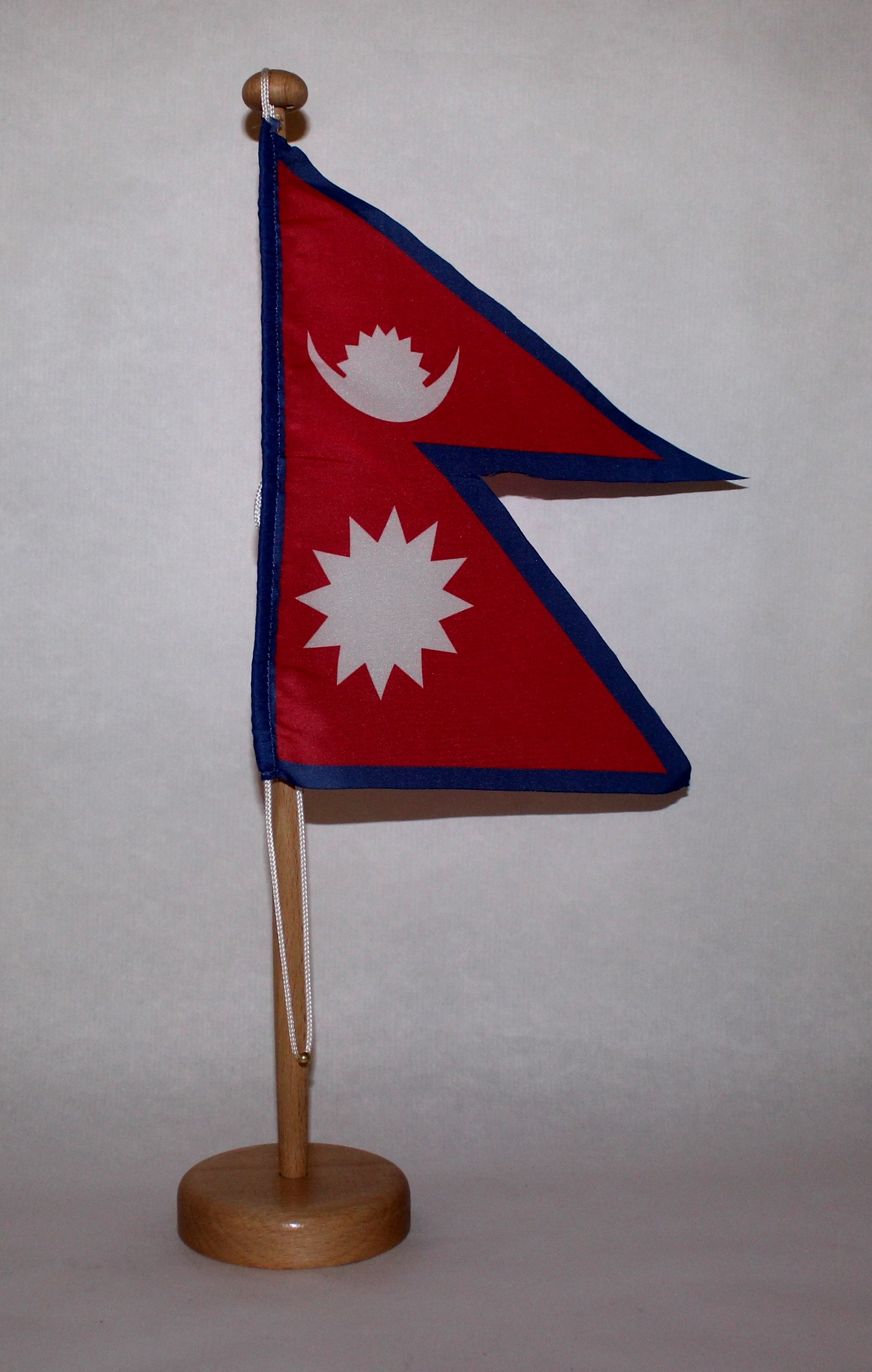 Produktinformationen "Tischflagge Nepal 15x15 cm optional mit Holz- oder Chromständer Tischfahne Tischfähnchen"