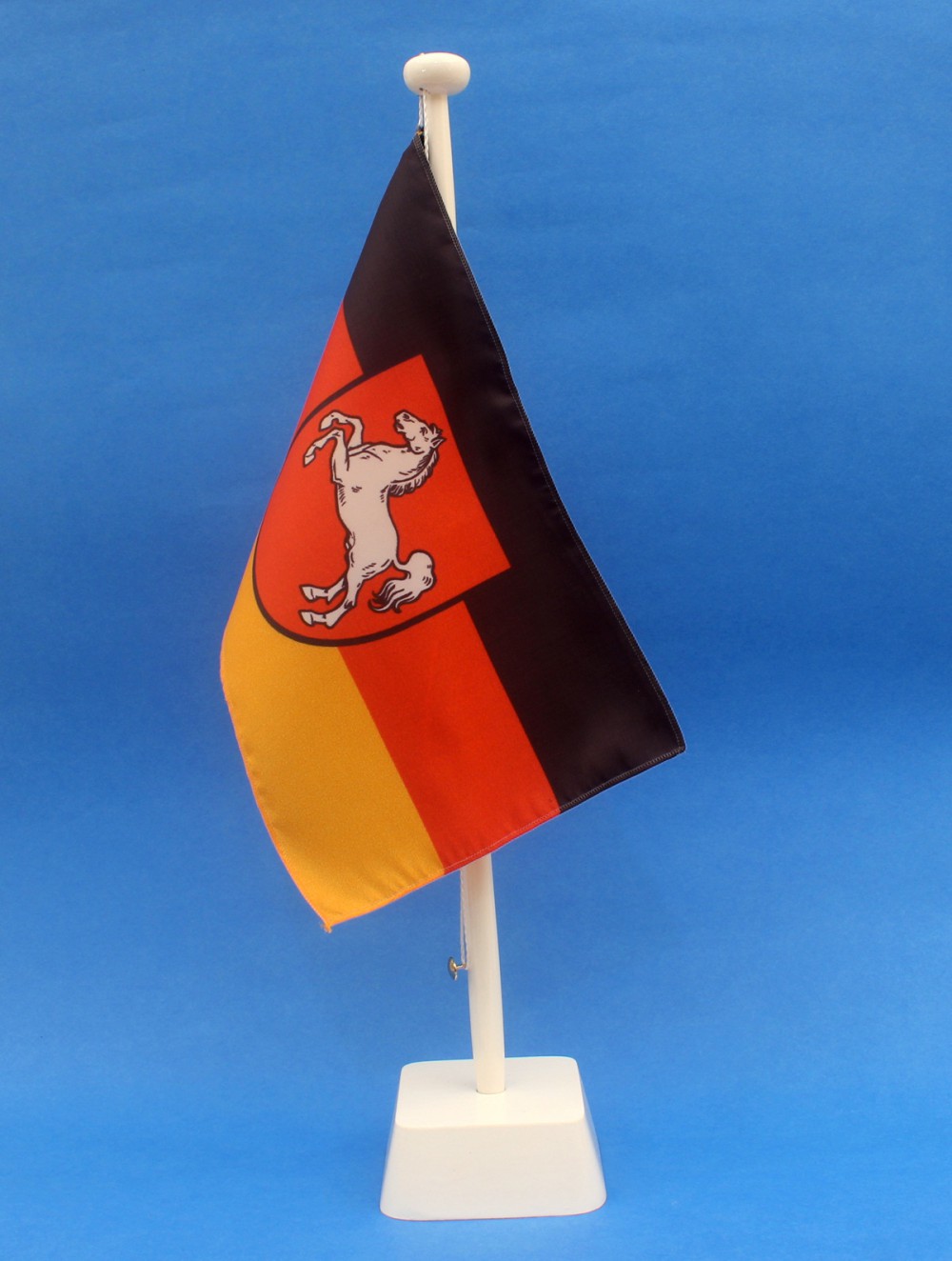 Produktinformationen "Tischflagge Niedersachsen 25x15 cm optional mit Holz- oder Chromständer Tischfahne Tischfähnchen"