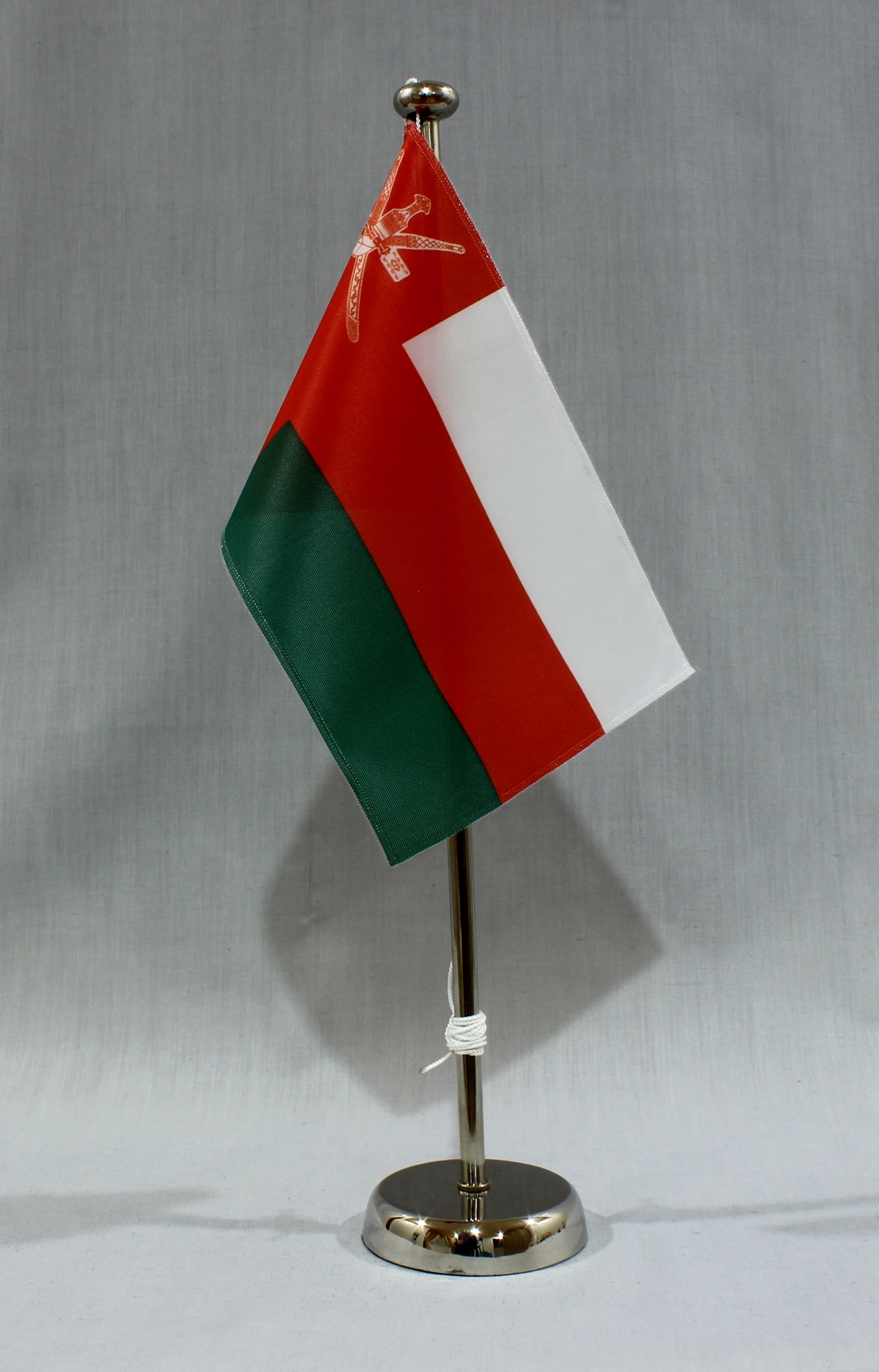 Produktinformationen "Tischflagge Oman 25x15 cm optional mit Holz- oder Chromständer Tischfahne Tischfähnchen"