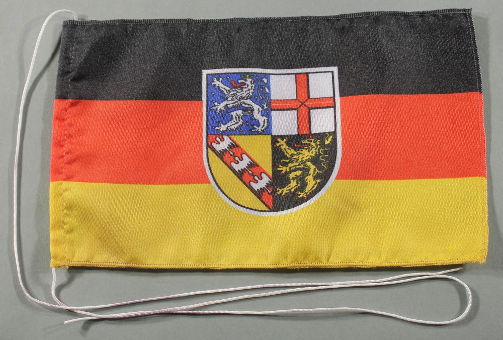Produktinformationen "Tischflagge Saarland 25x15 cm optional mit Holz- oder Chromständer Tischfahne Tischfähnchen"