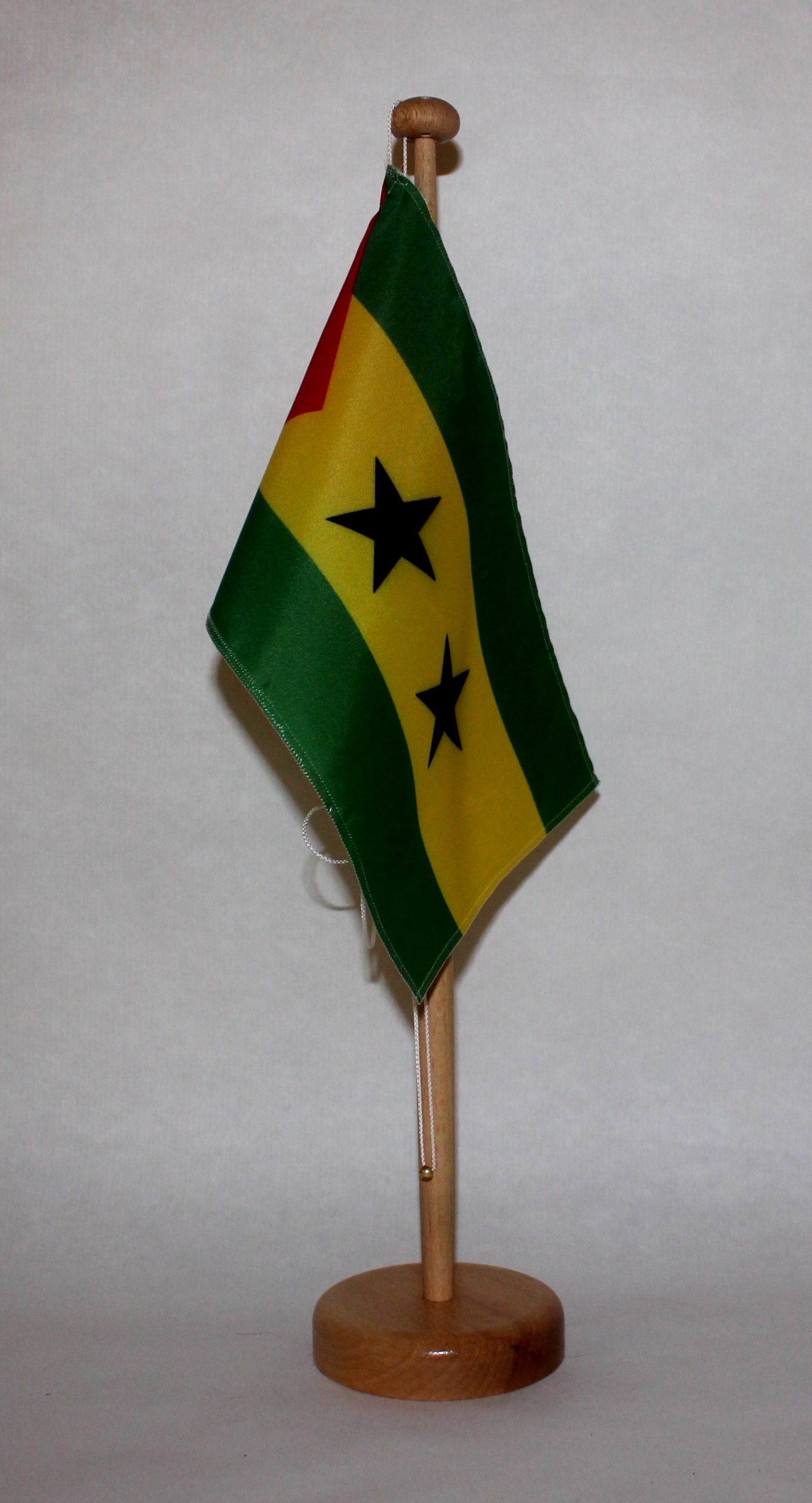 Produktinformationen "Tischflagge Sao Tome und Principe 25x15 cm optional mit Holz- oder Chromständer Tischfahne Tischfähn"