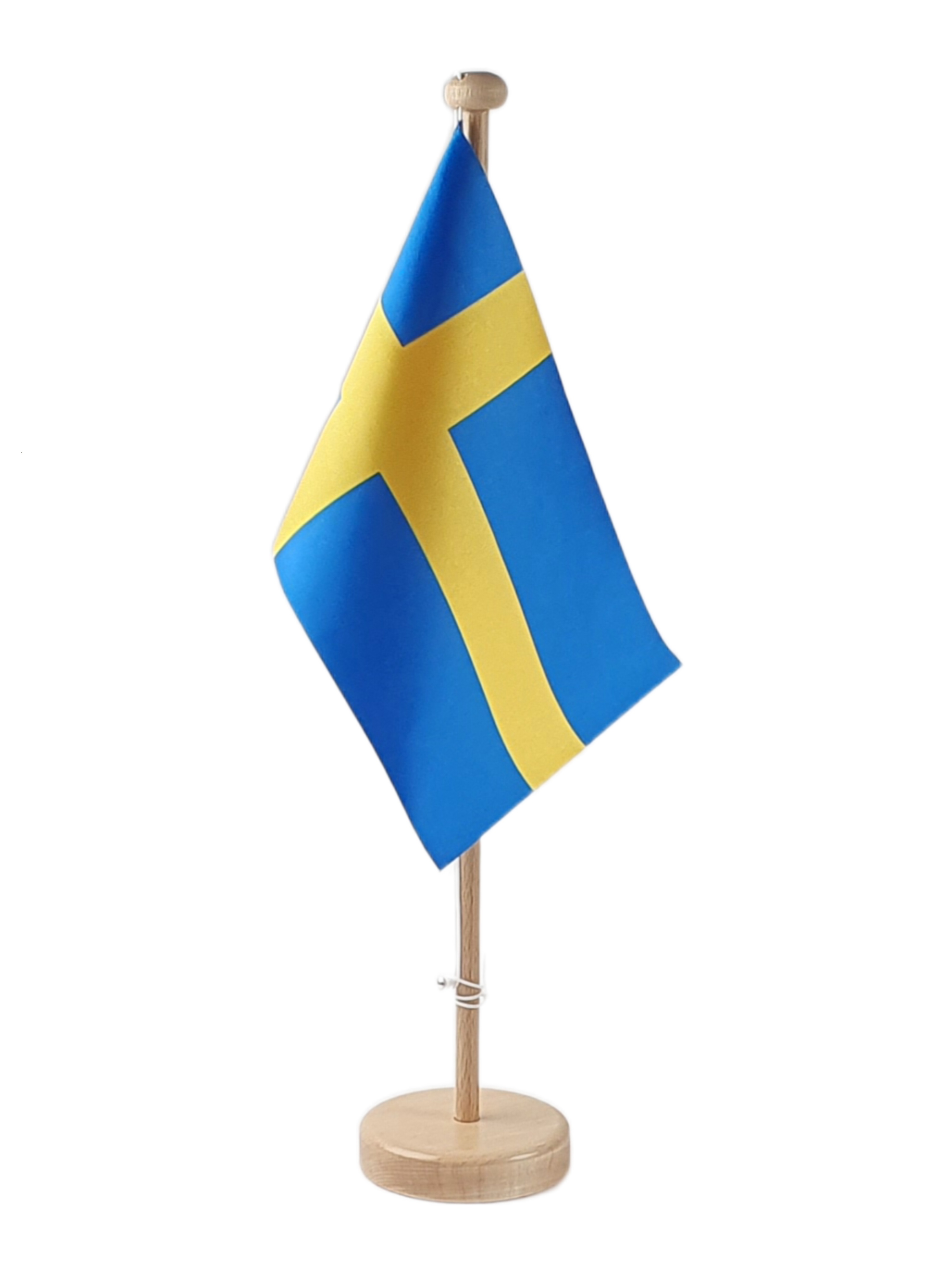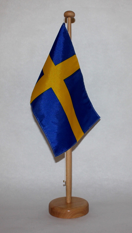 Produktinformationen "Tischflagge Schweden 25x15 cm optional mit Holz- oder Chromständer Tischfahne Tischfähnchen"